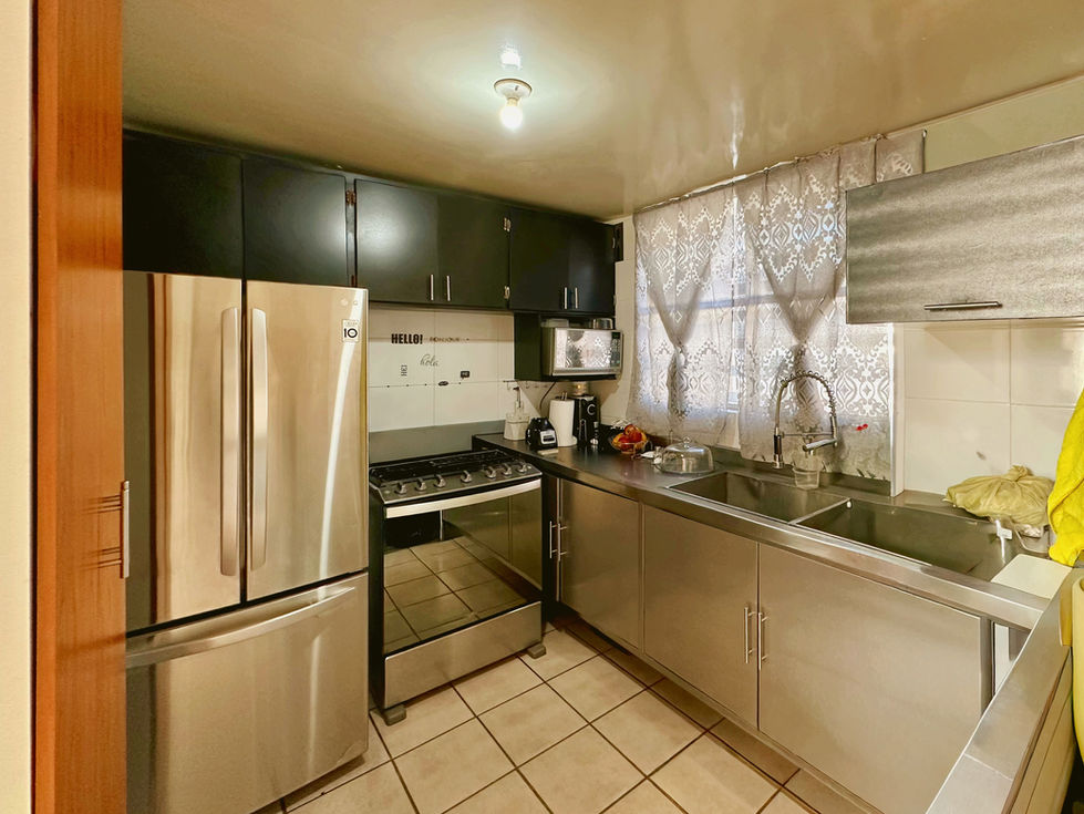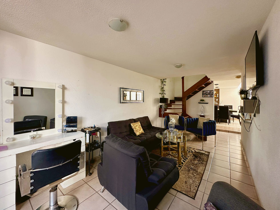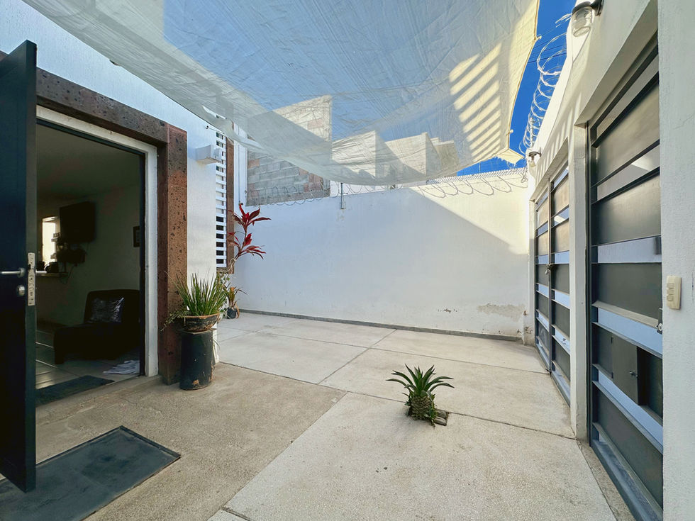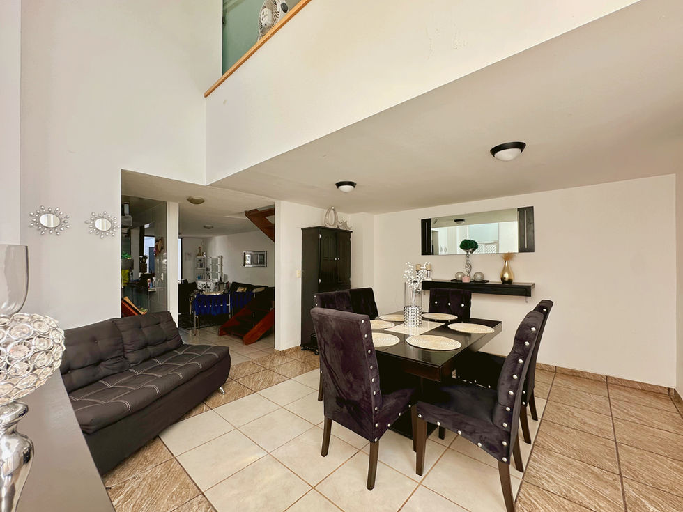 Casa de dos niveles con ampliación en planta baja y alta que permite contar con espacios sociales más amplios que los modelos originales del fraccionamiento. Su ubicación frente a parque y dentro de una zona con servicios cercanos facilita la vida cotidiana. Planta baja: Cochera con portón para un automóvil y armario para herramientas. La ampliación permite una sala y comedor más amplios respecto al modelo original de la zona. La cocina se encuentra equipada con cocina integral y conecta con el área de servicio. En este nivel también se encuentra un medio baño para visitas.